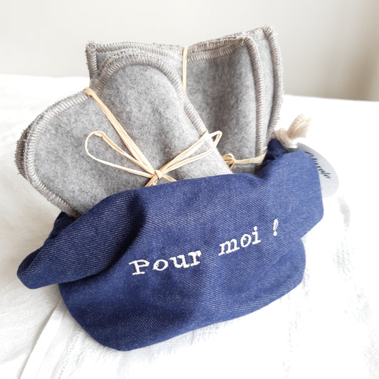 Précieuse Découverte - MAXI pochon de lingettes et mini-gants en coton BIO
